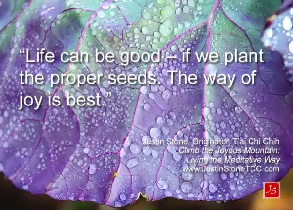 Joy: To teach well, it is obviously necessary to do TCC; I know what the practice has done for me. One can’t get the benefits without practice. But, whether or not you want to do TCC is entirely up to you. There is nothing wrong in abandoning T’ai Chi Chih practice if you get nothing out of it. / With the coming of the beautiful autumn weather, there is heightening of spirit, a great feeling of “livingness” and, usually, a gratitude for being alive. / As the Zen Master Seigen said as he was dying, ‘Better than Zen doctrine, the Joy of Living.’ – Justin F. Stone