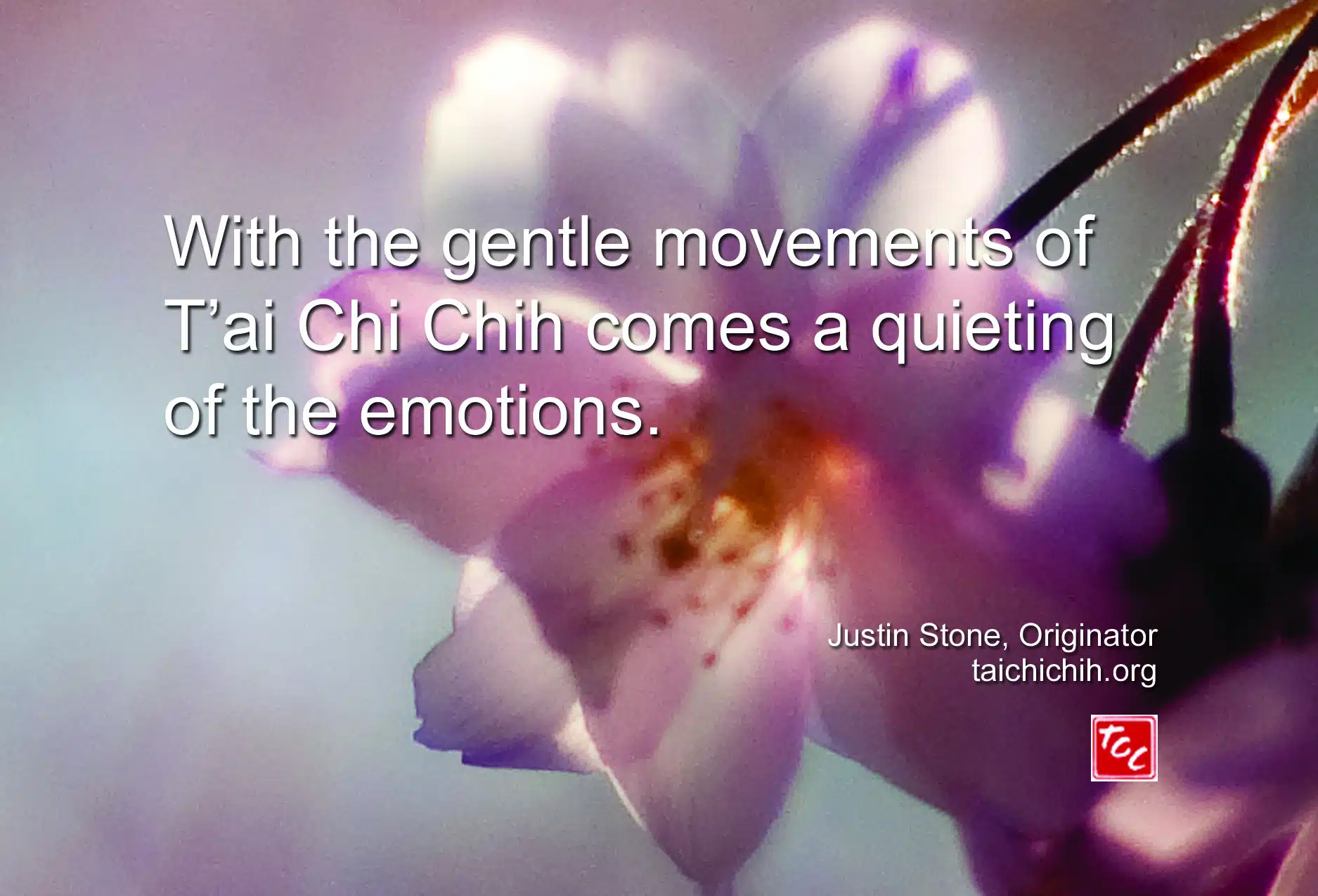 Becoming: When we perform T’ai Chi Chih properly we feel the results. Since we are, essentially, a conflux of moving energies, stimulating and balancing the Intrinsic Energy (Chi) affects our whole being. The effects seem to be personal but, in truth, they are widespread. Just as our Enlightenment is saving all beings, so does the balancing of the Universal Energy affect both the outer and the inner…. We do not heal symptoms; we become whole.” (Spiritual Odyssey). – Justin F. Stone