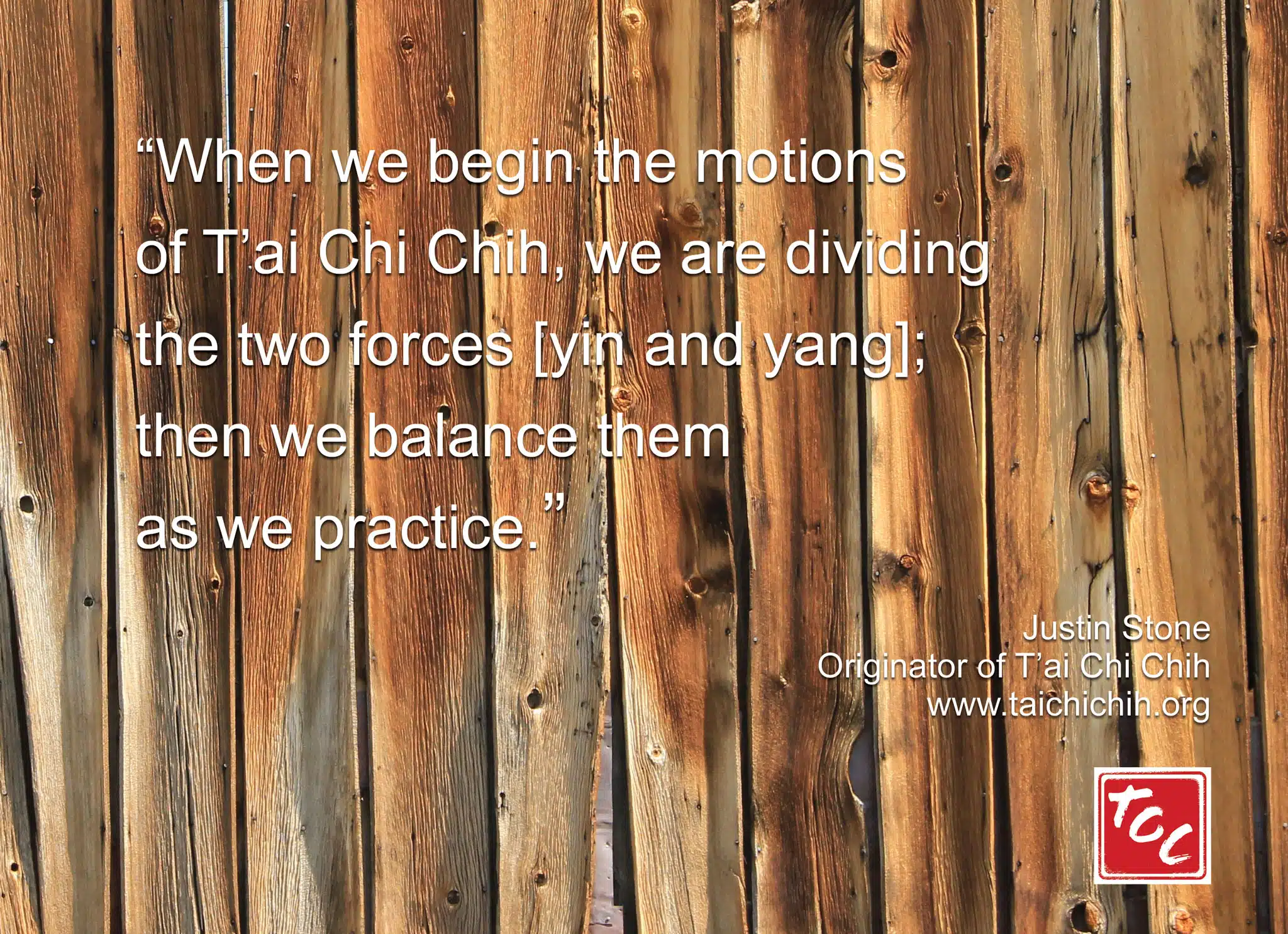A free flow of Chi, the vital force, is an obvious necessity. – Justin F. Stone, TCC Originator
