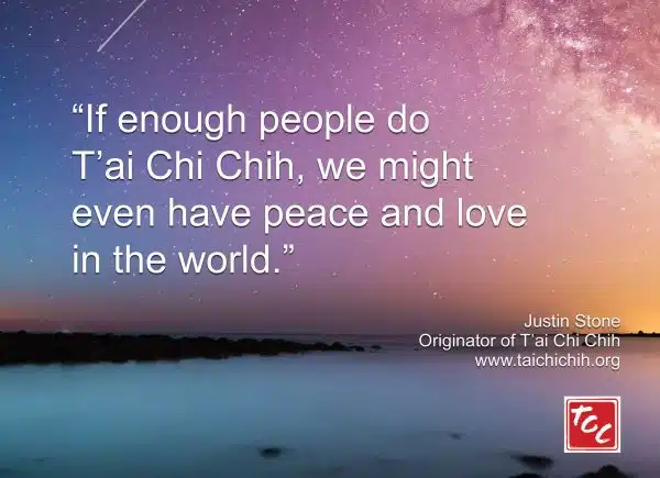 Peace: “Little did I know that changes I perceived in myself might be visible to others. About 18 months into my TCC practice, I was walking in my neighborhood when a car turned around and headed in my direction. A young woman stopped, rolled down her window and said, ‘I just want to tell you that you look like a person at peace with yourself and I want you to know that it made me feel good.’ Months later, as I was walking and listening to music, a friend drove by, stopped, rolled down her window and said something like ‘I want what you have.’ She wondered whether the music I was listening to was why I looked so serene. Since then, I’ve come to realize that practicing TCC does change a person. Certainly it has me.” – SN, Greeley, CO